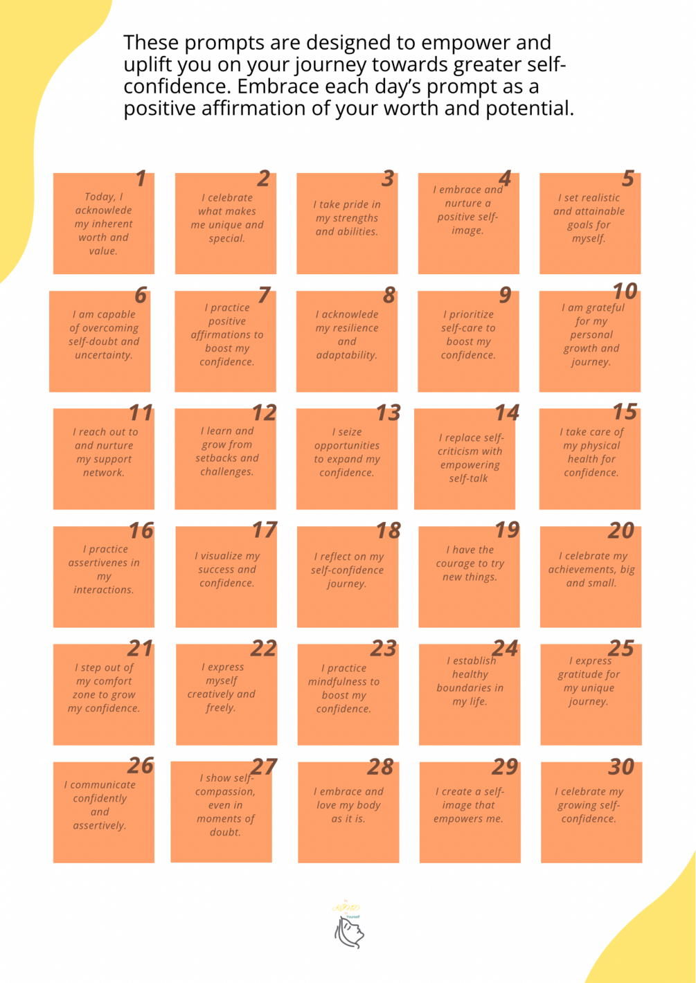 Affirmations are like bricks for building self-confidence. They help you see your strengths and accomplishments. Over time, they dismantle self-doubt to reveal your radiant self.