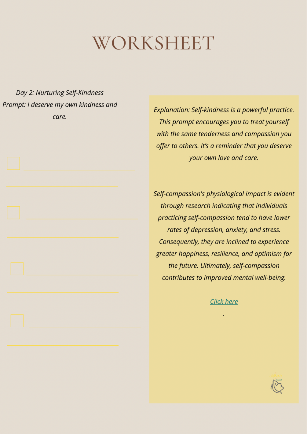 If Sheila’s story resonates with you, then it’s time for your story to begin. Get your copy of the “Self-Compassion Journey Workbook” and embark on your path to self-compassion, inner strength, and healing. Your story of self-discovery is waiting for you